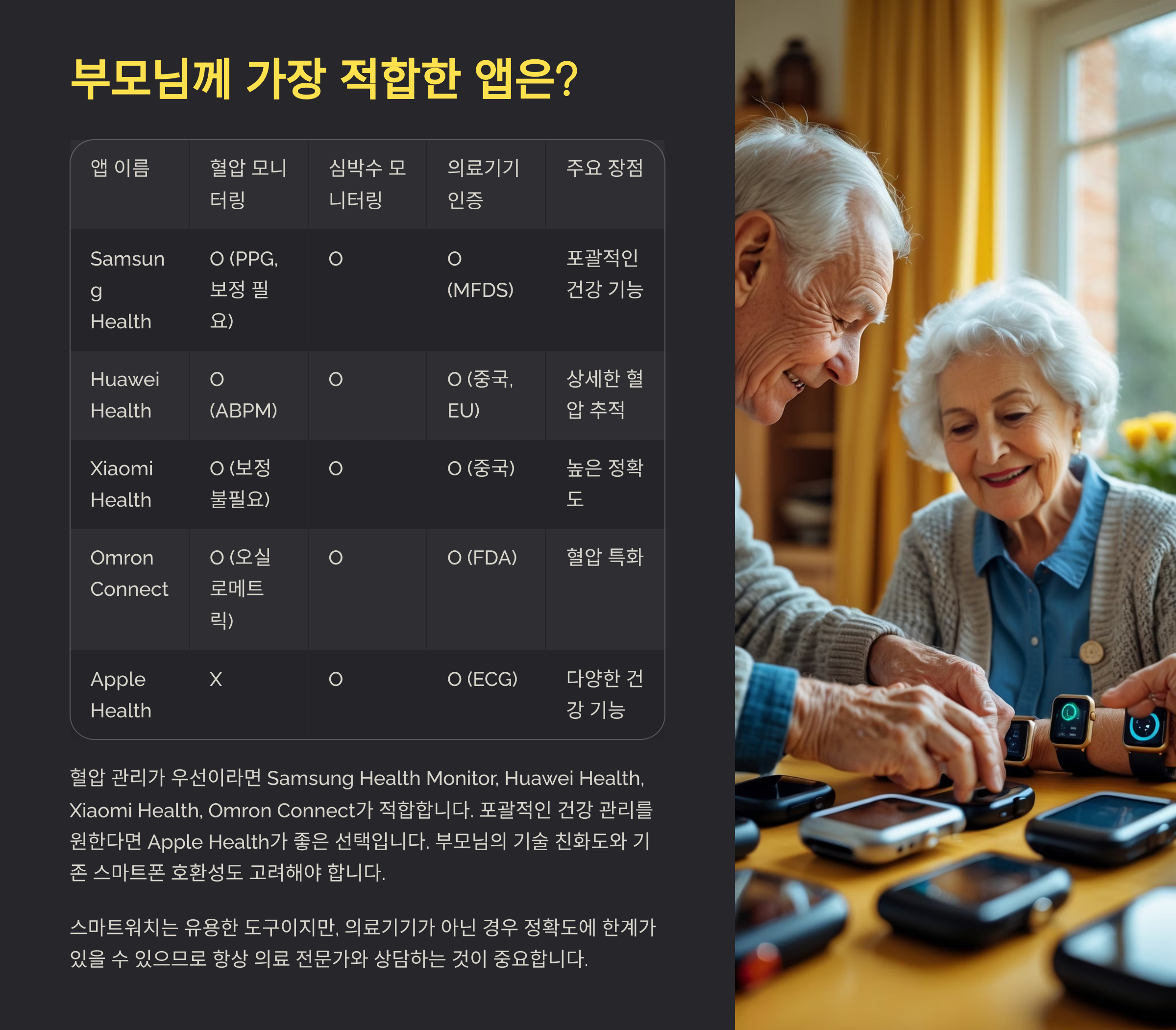 부모님을 위한 스마트워치 건강관리 : 심박수·혈압 모니터링 앱 5선
