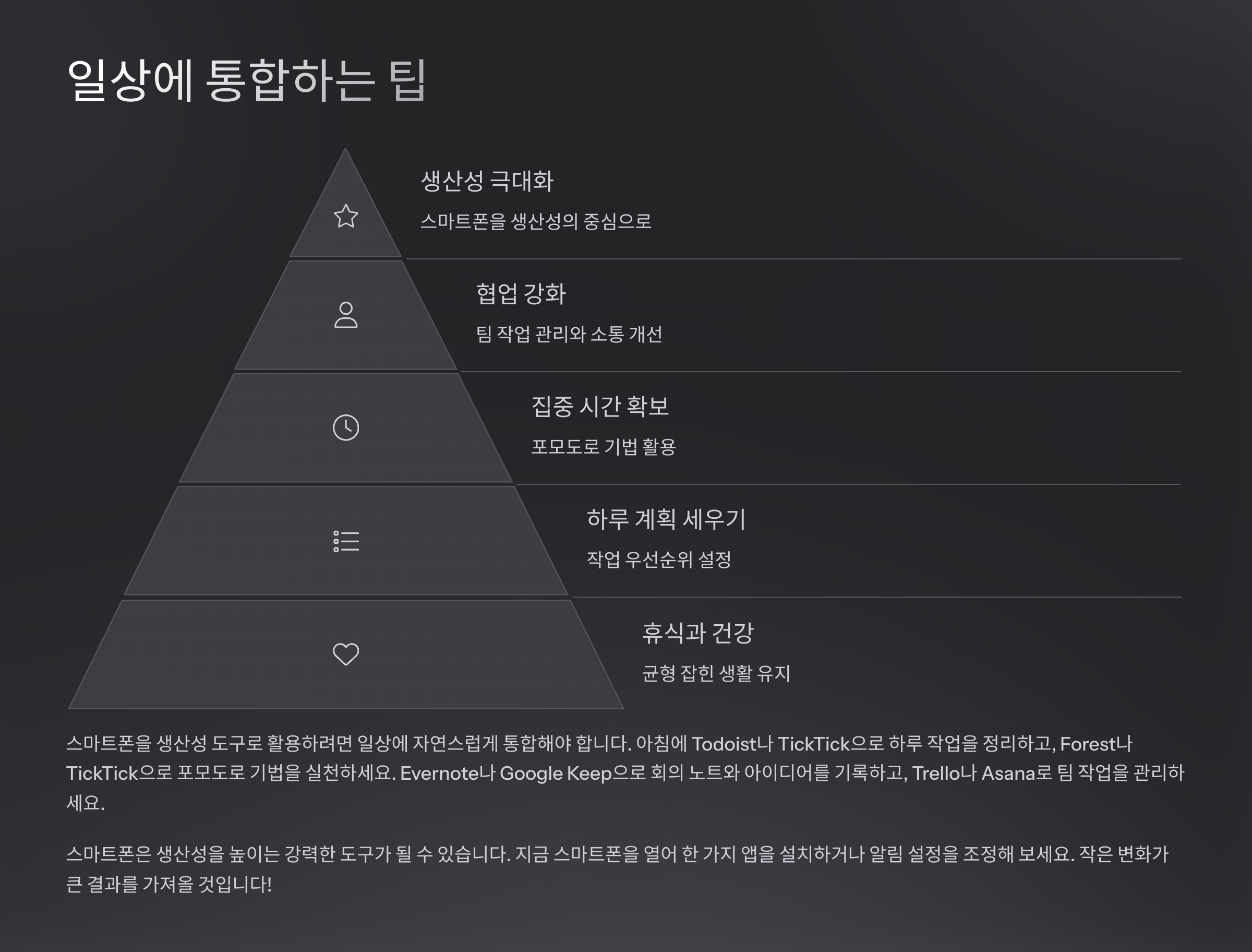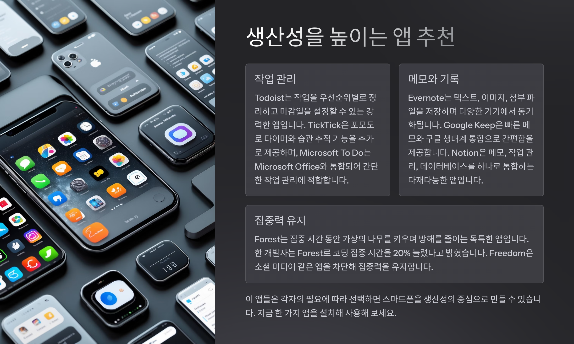 어떤 생산성 앱이나 스마트폰 설정이 여러분의 일상에 도움이 되었나요? 댓글로 공유해 주세요!